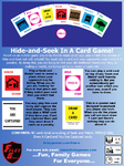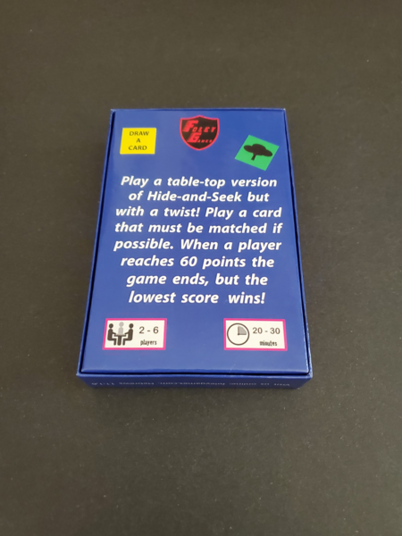 This card game is based on an old-fashioned game called "Free the Box" that was played outside by friends many years ago. It's a table-top version of Hide-and-Seek with a twist, where you play cards to try and capture your opponents or those childhood friends you just could never find! They have to match the same card or play a "Capture" card or a "Wild" card to avoid being found or captured. Each game has several rounds or hands and when one player finishes theirs all other players add points for any left-over cards. The game ends when one player reaches 60 points but the lowest score wins the game.